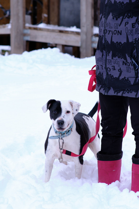 От хозяев: Лапушки гуляют на участке без привязи, подружились с нашей уличной собакой!) Какое им раздолье, они бегают, играют, в сугробах ныряют❤
