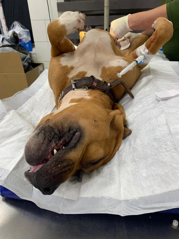 В приюте. Вес 26 кг. Не кастрирован. Укололи гискан. Чипа и клейма нет. На спине небольшая шишка, как папиллома.