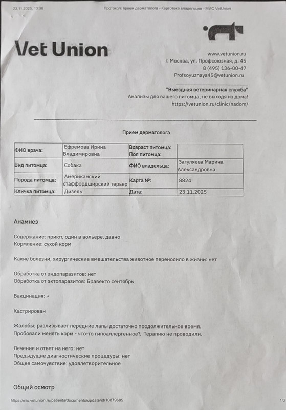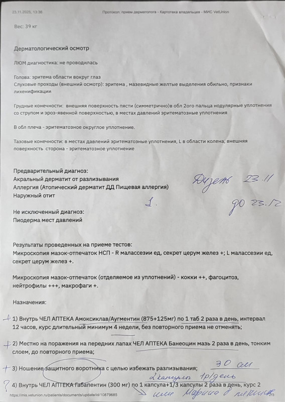 На лапках были болячки от расчёсов или разлизывания , возможно аллергия.