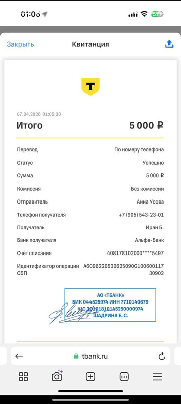 Альфа банк по номеру телефона 8(905)543-23-01 Ирэн Александровна