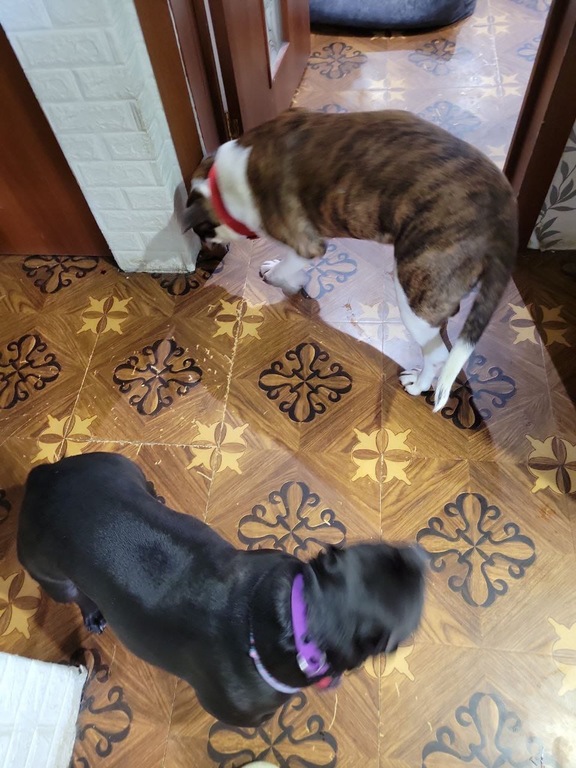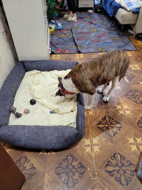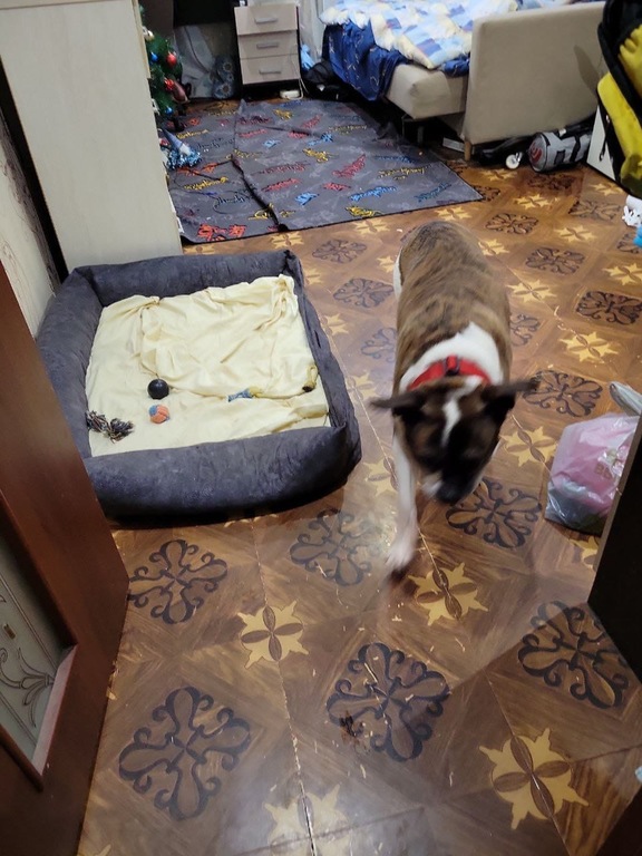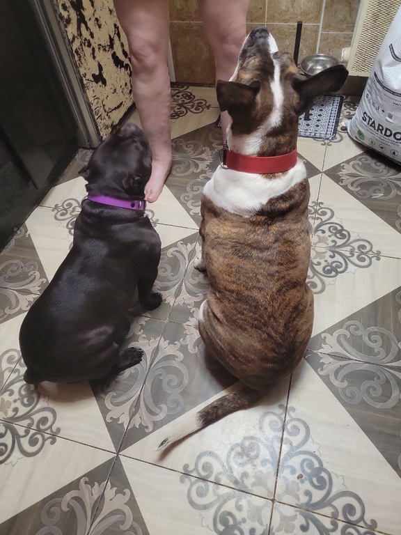 От хозяев: Кентавр ночью ходил туда сюда, но потом под утро уснул, завтракать пришли вместе, на выгуле гуляет комфортно. Только пока делает дела дома, на улице просто гуляет