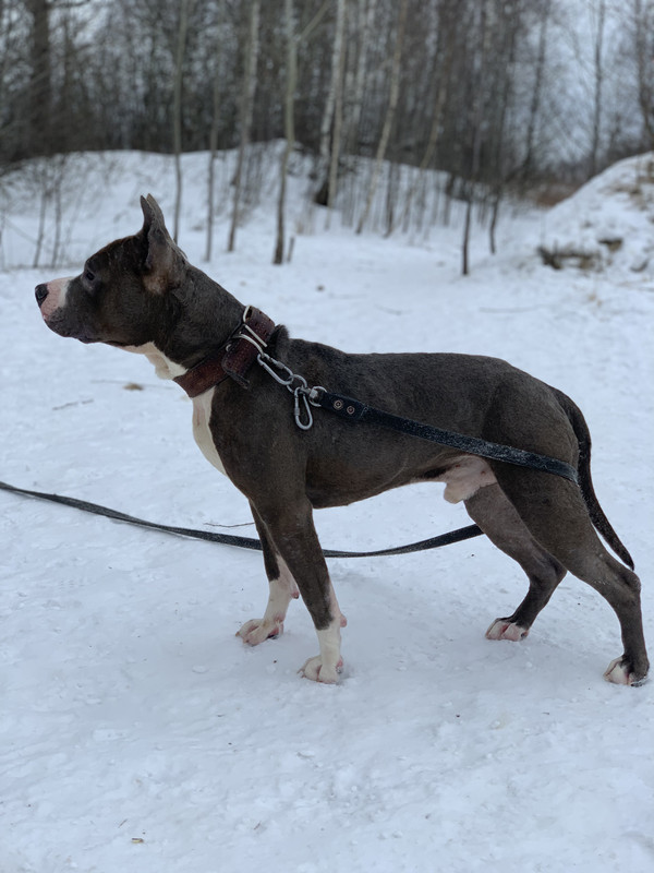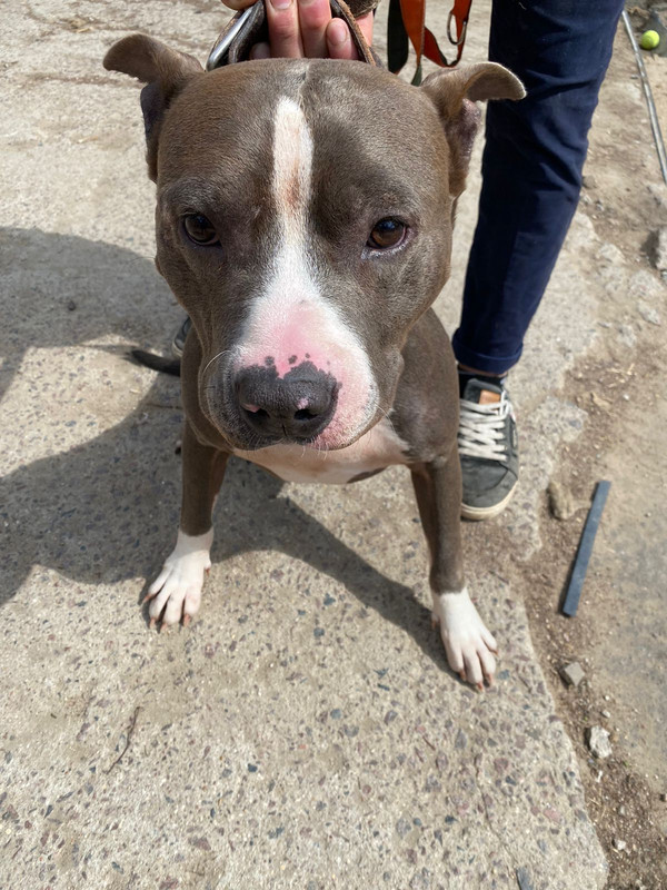 Среднего размера, правильного телосложения, с крупной головой, с развитыми мышцами, но пока немного худоват. Но в рамках приюта это быстро решается в сторону набора веса