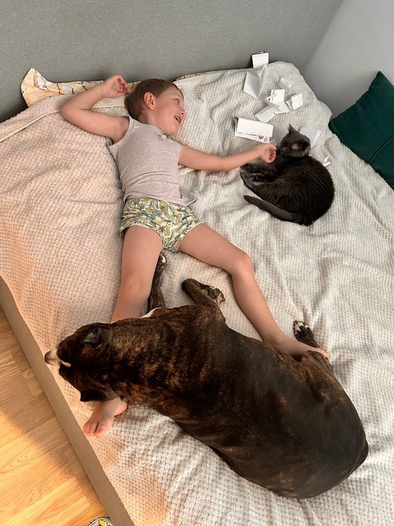 Ясмин- кошка, Бетти - кролик, Снуп-питбуленыш